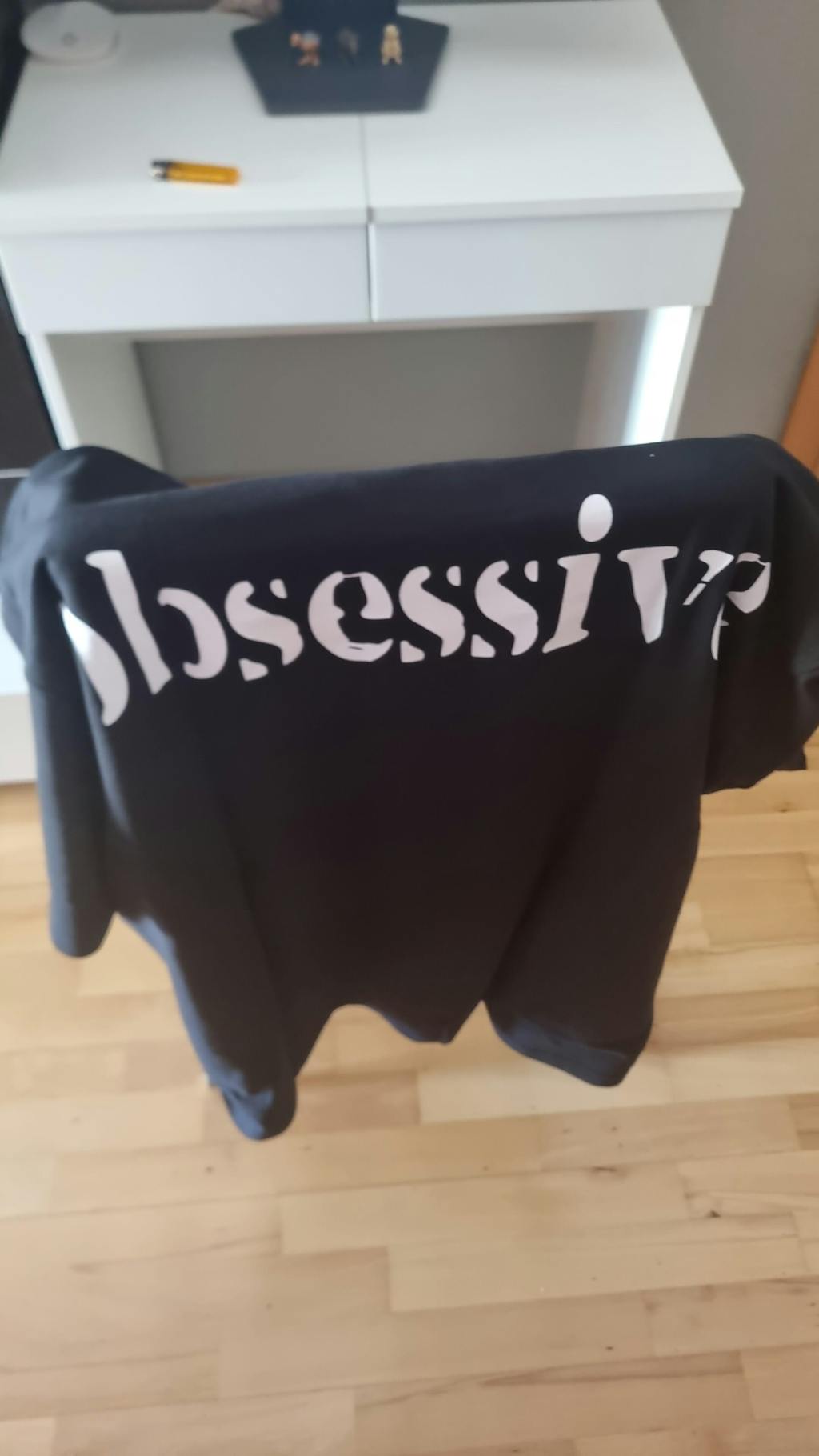 Camiseta estilo oversized en color negro con la palabra "OBSESSIVE" en el pecho y la zona de detrás de los hombros. Tiene el fit perfecto tanto para usarla en el día a día como para entrenar en el gym. Por si cabía duda, esta es la favorita de Joan Pradells.