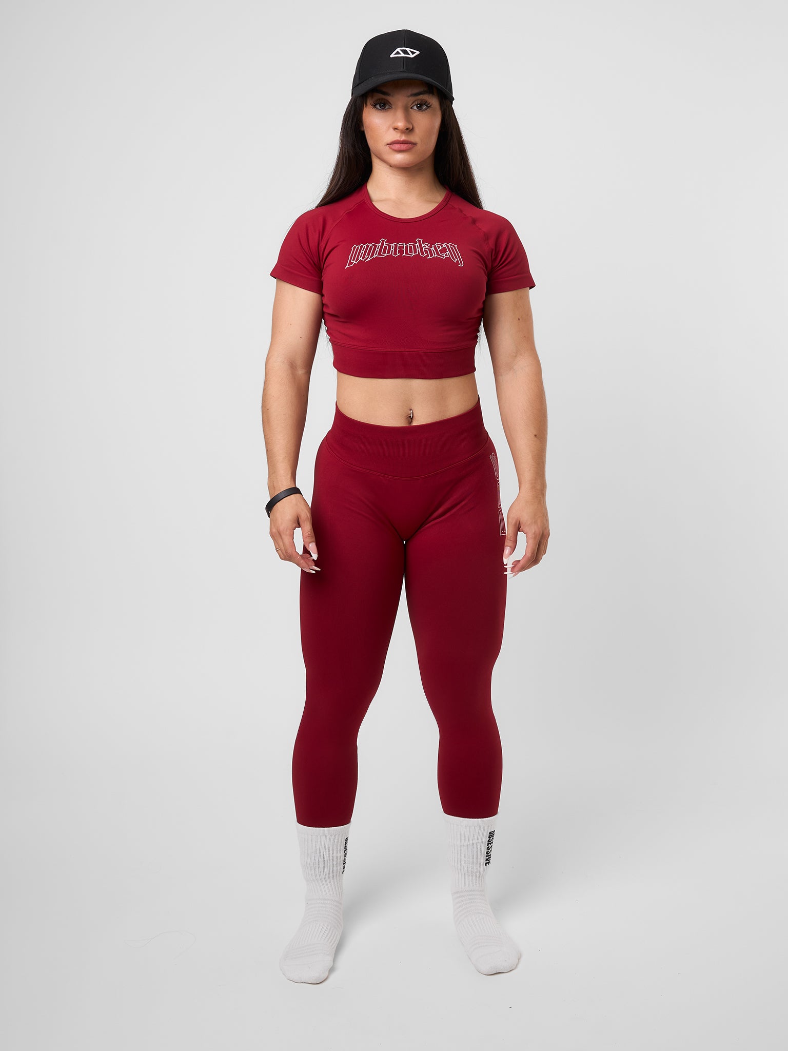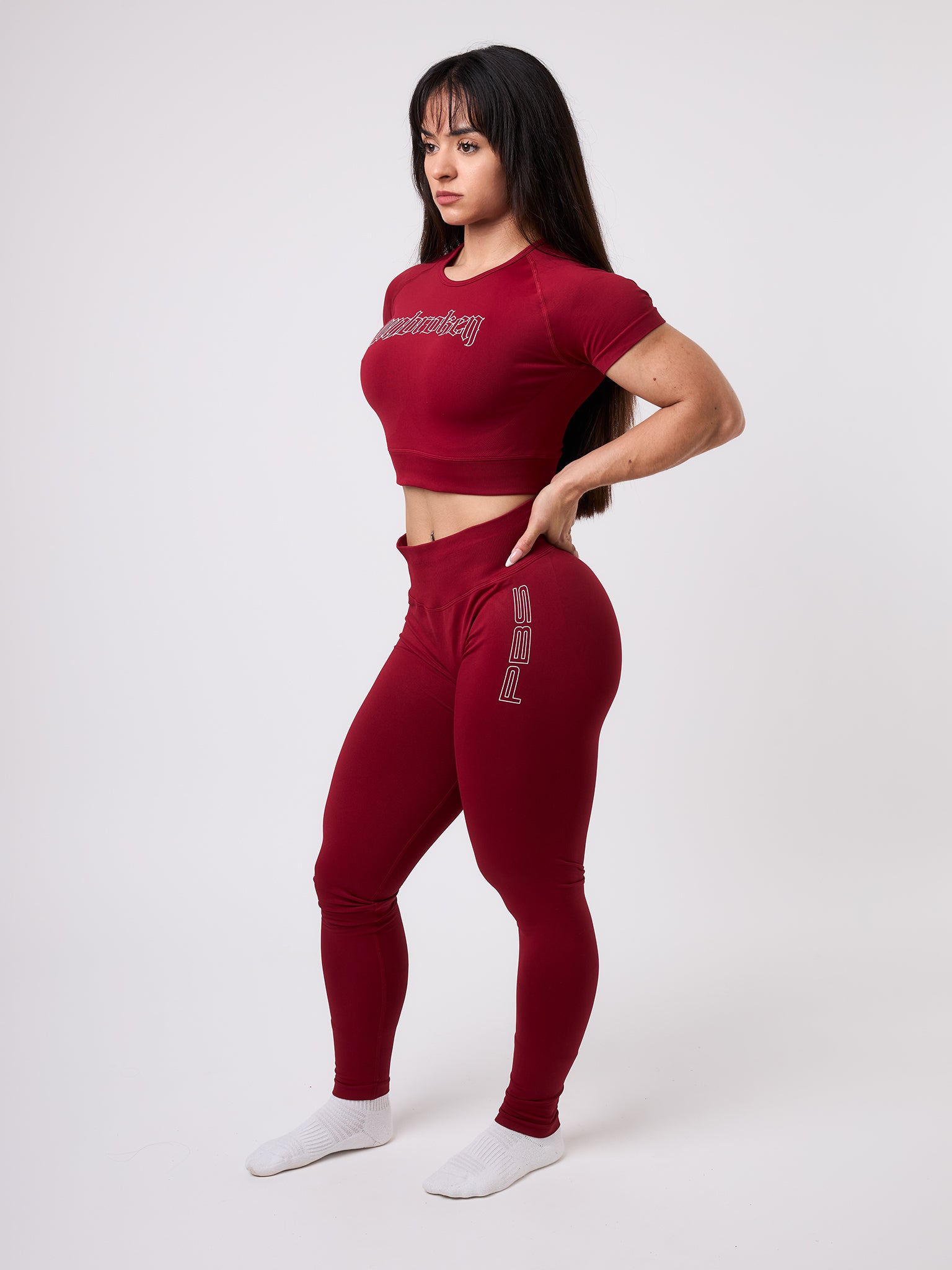 Leggings de la colección Unbroken de PBS en color rojo zafiro. Diseñados para ofrecer un ajuste de alto rendimiento, estos leggings cuentan con una pretina ancha de compresión que define la cintura y brinda soporte en cada movimiento. Su tejido elástico se adapta perfectamente al cuerpo, favoreciendo la movilidad sin restricciones. El logo vertical PBS en la pierna añade un toque moderno y distintivo, ideal para entrenamientos intensos o looks deportivos con estilo.