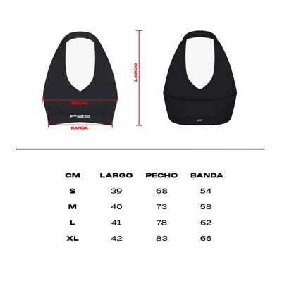 Top Power de PBS Apparel en color negro que se distingue por su diseño atrevido y funcional. Con un escote alto y una espalda ajustada que favorece el movimiento, es ideal para entrenamientos intensos. La tela suave y elástica se adapta cómodamente, ofreciendo libertad total. Los detalles inspirados en un corsé estilizan la silueta, resaltando tus mejores atributos y dándote confianza.